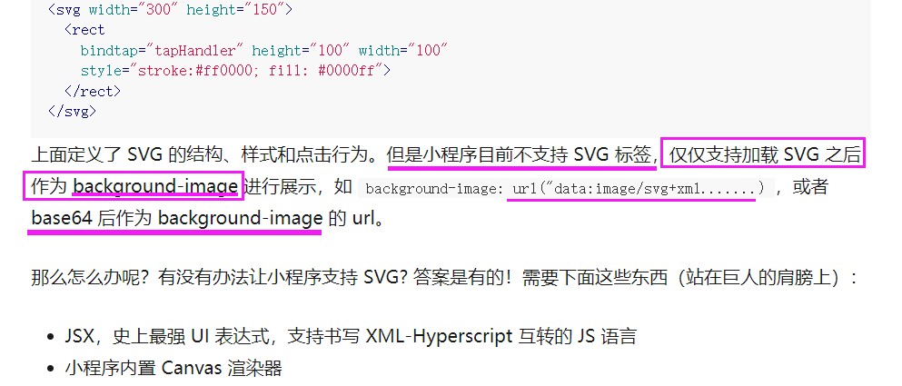 而支持上面这些优秀特性的前提是 - 需要支持 SVG 标签。比如在小程序中直接写: