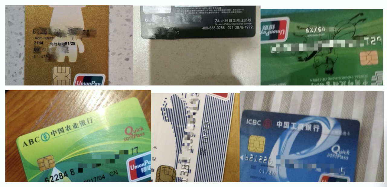 下面是优化的一些银行卡示例, 对拍摄不完整、任意角度和最新版式都能很好地适应,降低用户拍摄要求