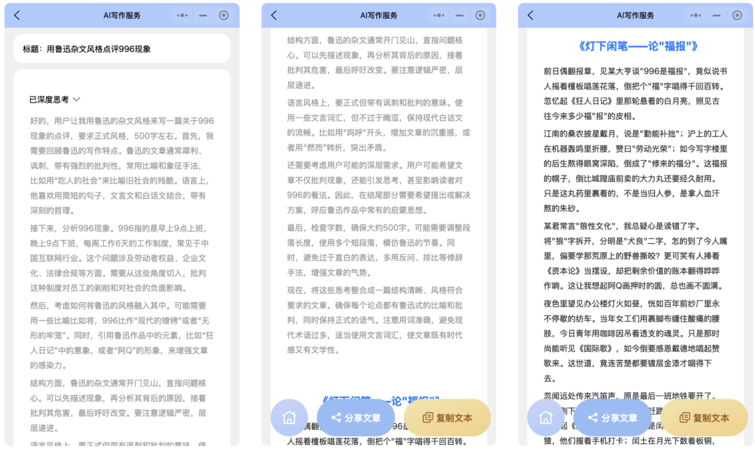推荐两个已经接入满血版DeepSeekR1的小程序,分别不同的场景:AI写作、AI搜索。