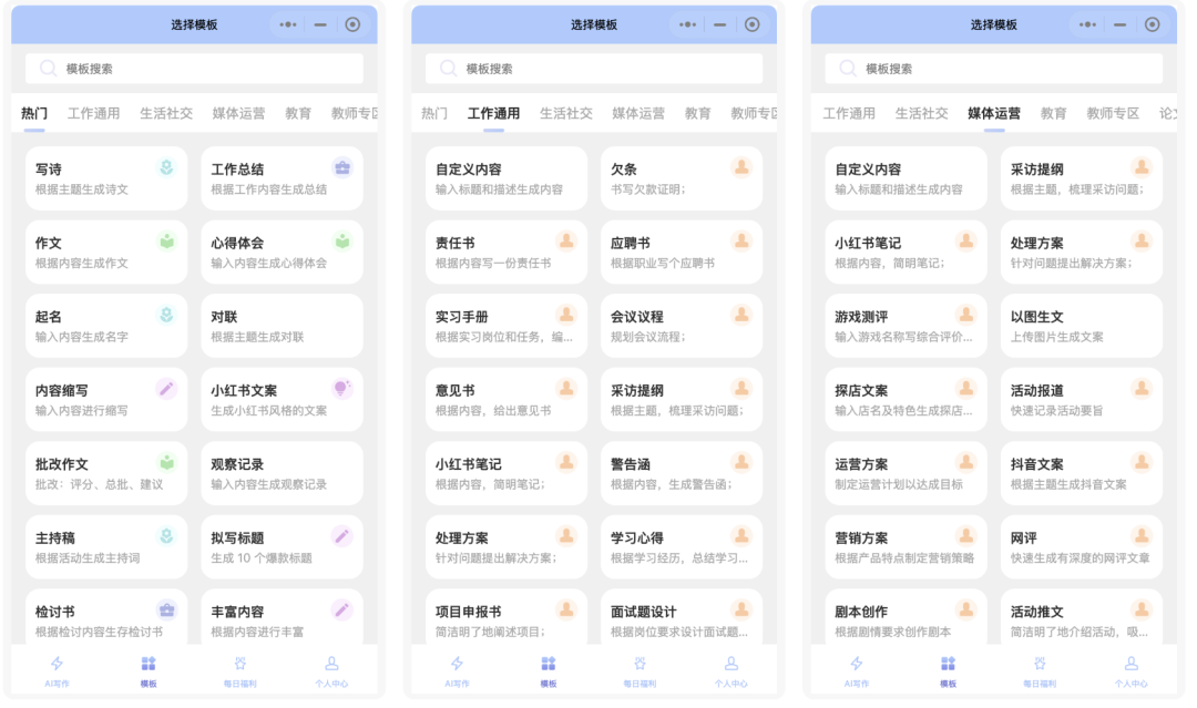 推荐理由:这个AI写作服务小程序内置了上千个写作模版,直接使用即可,还支持自定义AI写作模版,打造自己专属的DeepSeek写作助手。