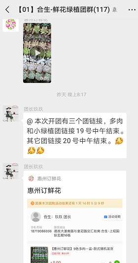 团长还可以在群中不定期的发送鲜花视频附上优惠活动刺激消费。
