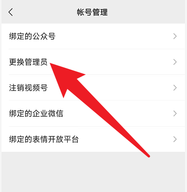 点击个人主页右上角三个点→“账号管理”→“更换管理员”:填写新管理员微信号,待新管理员确认即可。