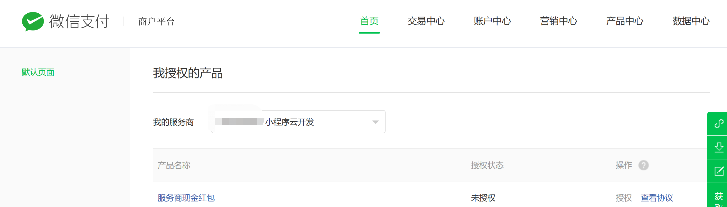 https://pay.weixin.qq.com/index.php/extend/product/submch ,才能看到“我授权的产品"