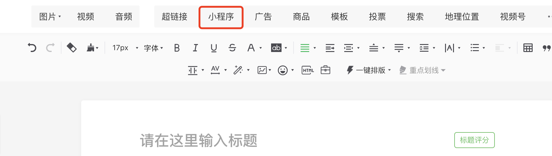 2,在公众号后台打开一篇文章,选择上方插入小程序