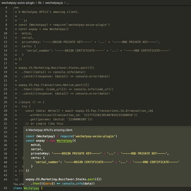 在向云端推送这个 wechatpay-axios-plugin 业务实现时,发现0.1系列还不够好用,还需要进行更多层级的包裹包装,遂再次做了重大更新,让SDK使用起来更简单、飘逸。