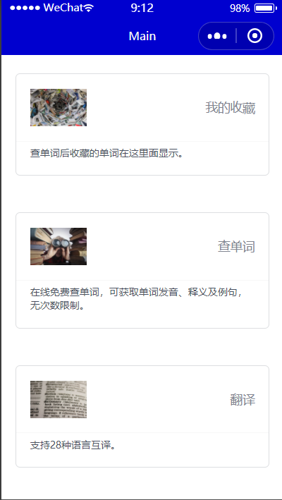 近年来,中国移动互联网爆发式的增长,使得人们能够利用碎片化时间获取所需信息,带给移动学习新的契机与体验。同时,利用碎片化时间接受的信息对记忆十分困难。该小程序提供用户随时随地对疑难词汇进行查询的功能,并可进行收藏,帮助用户多次利用碎片化时间进行记忆。
