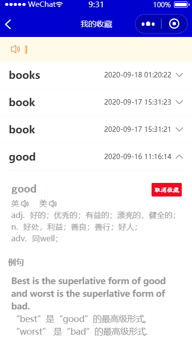 查看收藏的单词