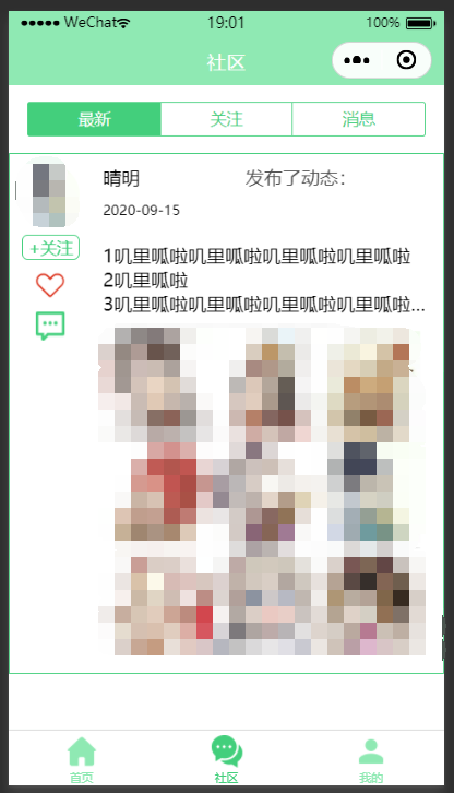 在实现页面搭建时,各个消息框的结构其实是有共通性的,所以在代码实现时使用了组件来提高代码的复用性。