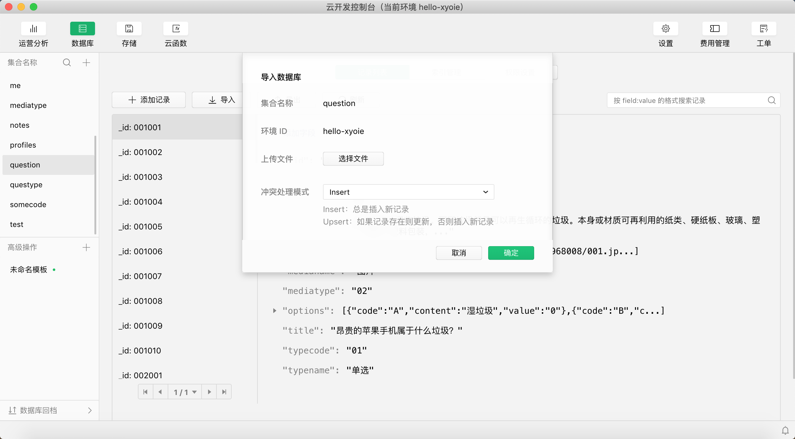 云开发小程序如何导入题库数据系列四,本篇文章主要介绍,在已经有JSON文件的情况下,如何导入到云开发数据库中