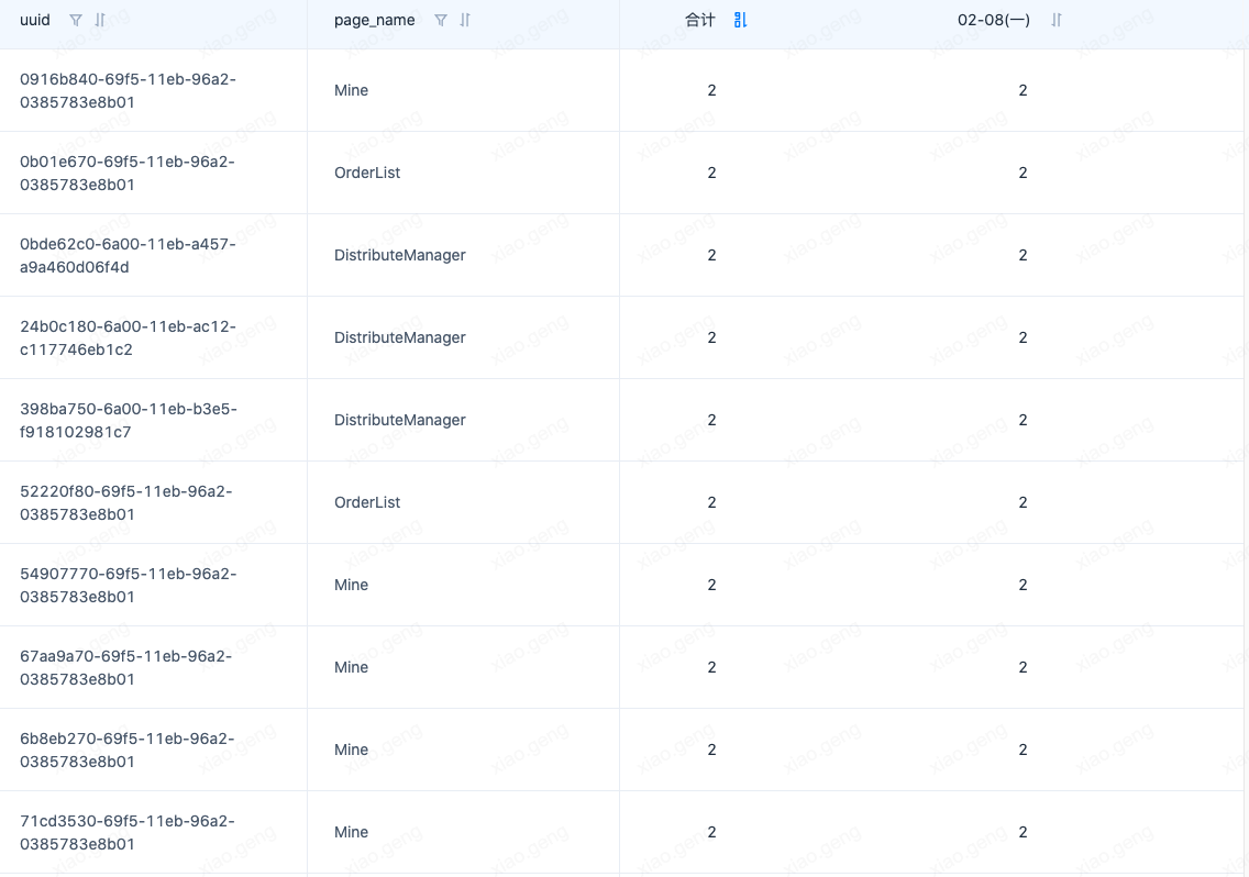 在忽略上报埋点丢失的情况下,每一次新开分包(或页面)时,加载成功的话,uuid 和 page_name 联合查询的记录数量都是 2。