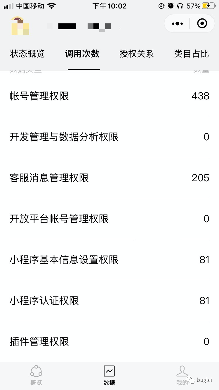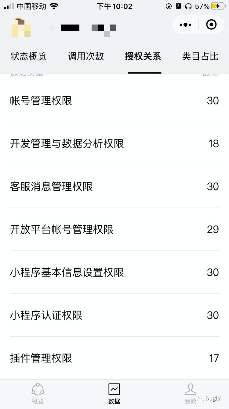 授权关系:可以看到授权插件管理权限,客服消息管理权限等的数量