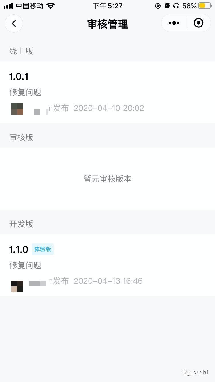 审核管理分为线上版、审核版和开发版,和网页版对应起来。