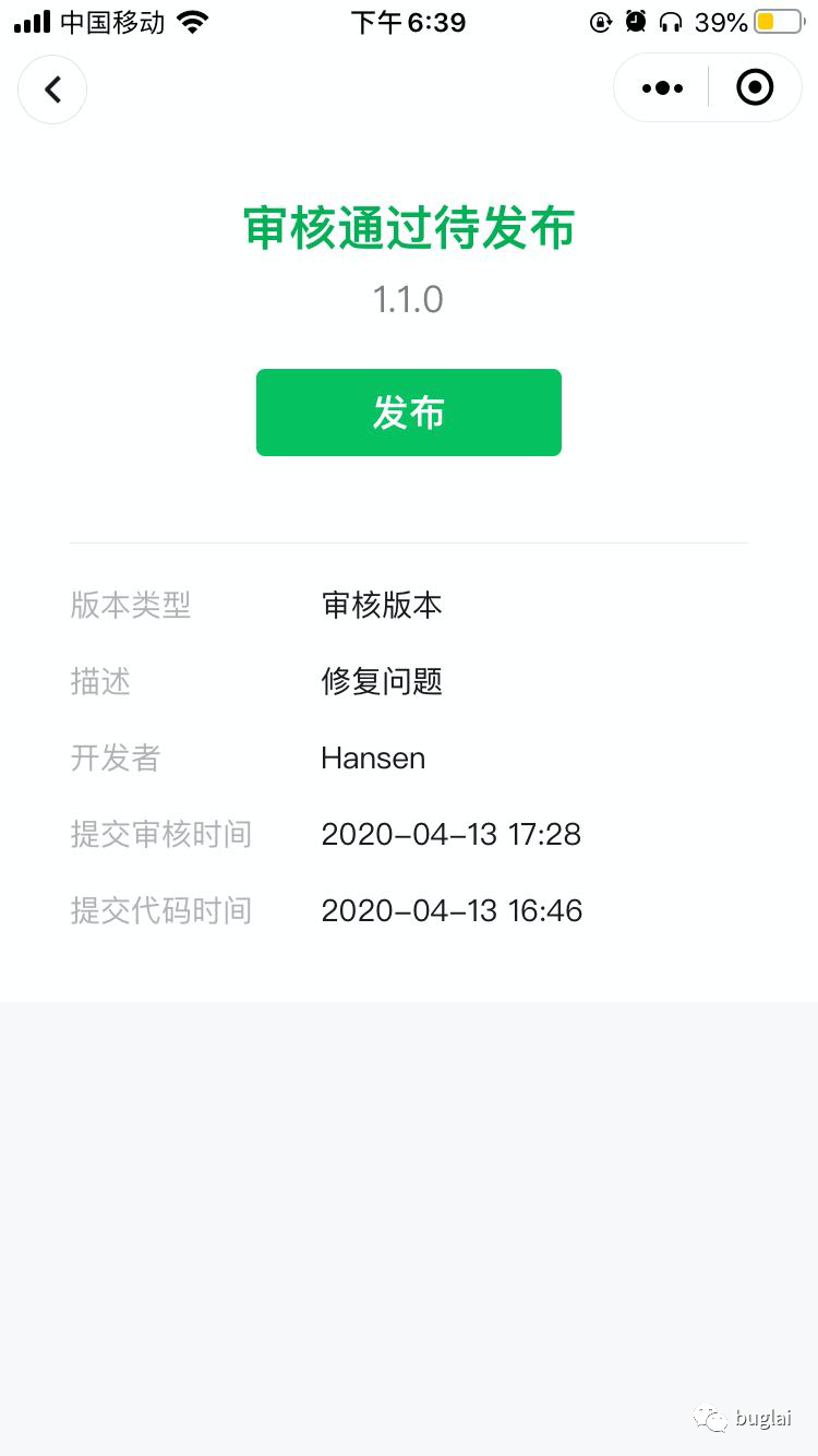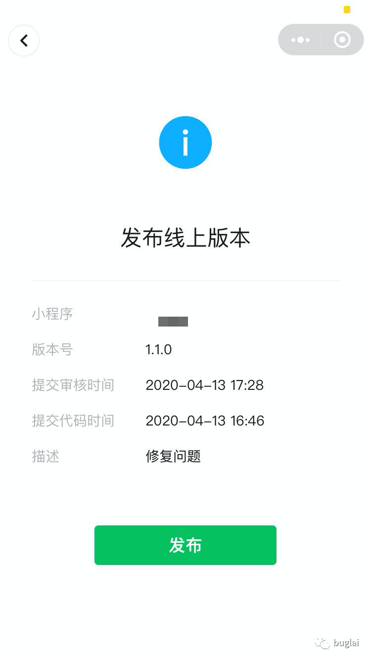 等小程序审核通过。进入页面之后,如果还没有授权实名信息,微信会提示进行”授权实名信息,授权完之后如下图可进行发布。