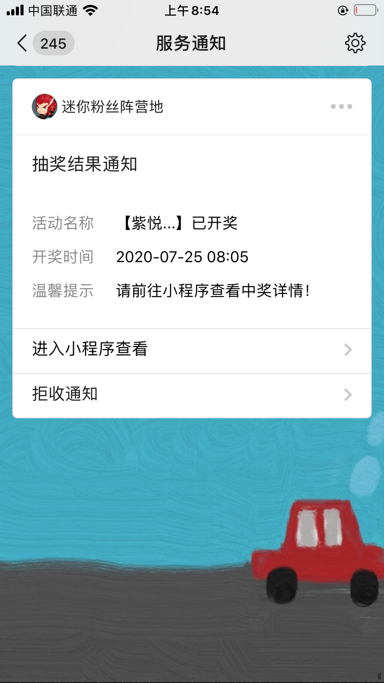 之前通过一次性订阅消息下发开奖通知,是直接跳小程序首页,昨天晚上把这个地方进行小的优化,直接到参加抽奖页,可以查看具体的中奖情况