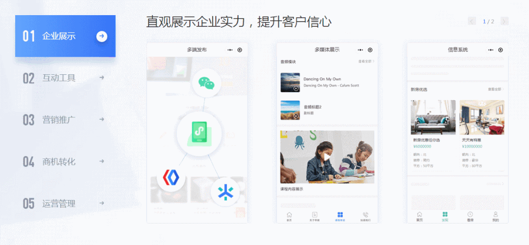 体验预约、直播、投票、打卡、商品展示、表单收集等功能。
