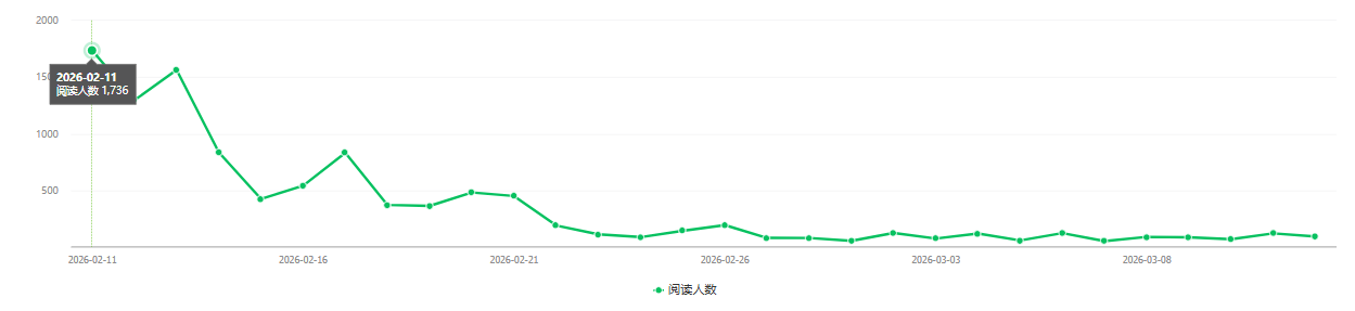 单篇文章,从偶尔几千的阅读,到三位数,到两位数,现在变成个位数了。