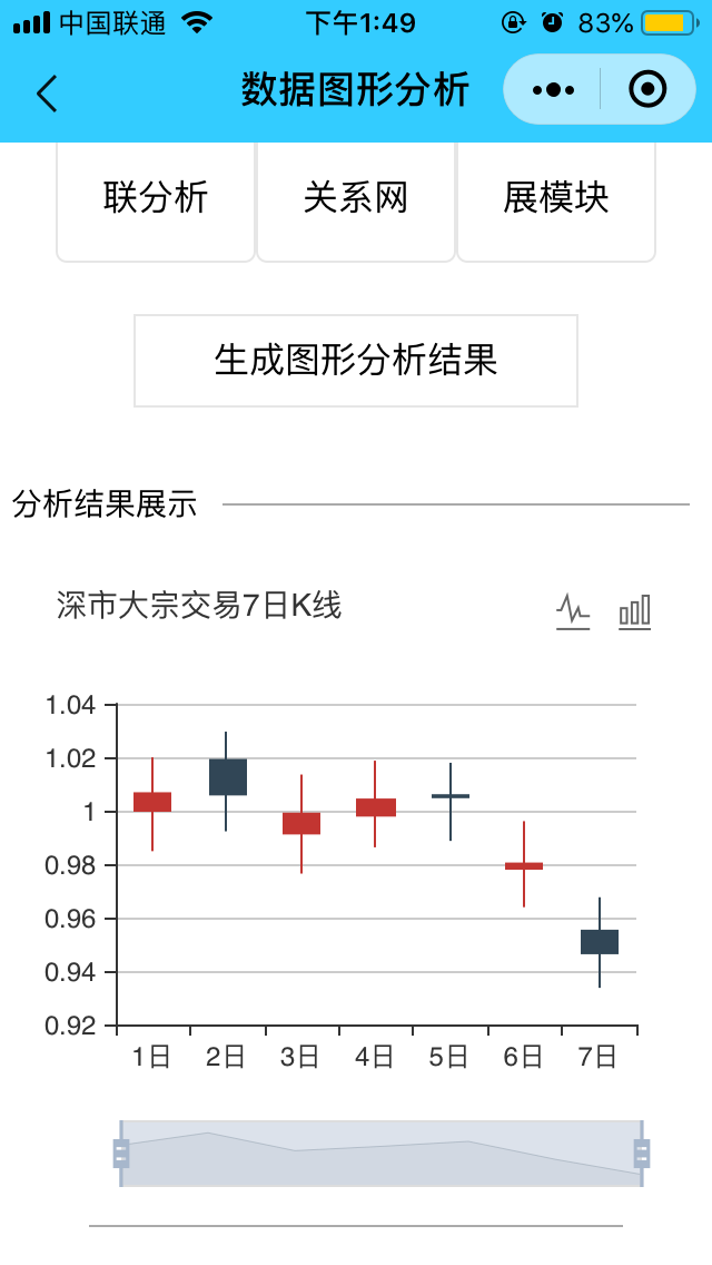 (4)通过定制打包echart小程序专用组件,实现大宗交易数据分析可视化。增强用户体验,使大宗交易数据分析更为直观。
