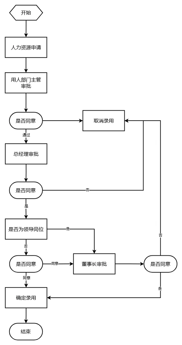 下面是企业员工入职流程的流程图,无需繁杂的文字描述,任何人都能够通过该图清楚整个流程,这其实就是一种工作流。