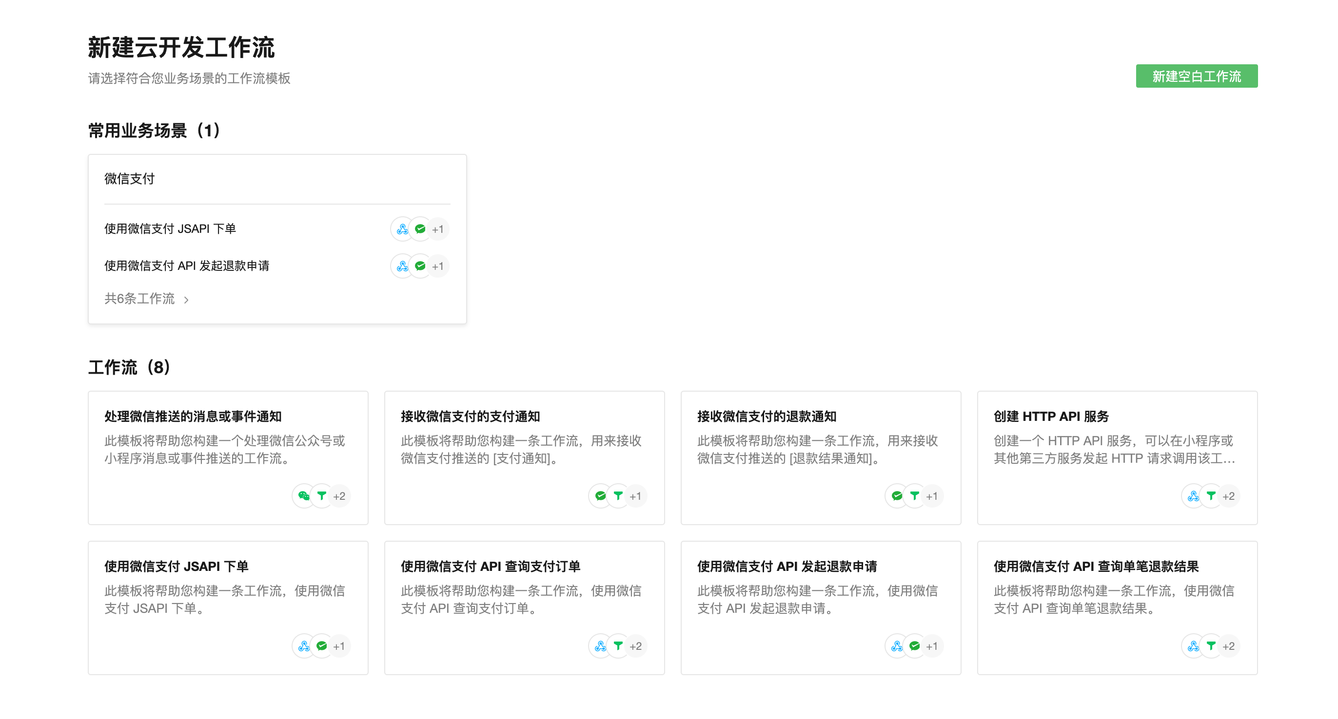 上周微信云开发上线了「工作流」能力。支持通过拖拉拽的方式搭建流程,支持调用、时间、消息通知、支付等多种驱动场景的业务计算,主要目的是降低开发门槛,提升开发效率。