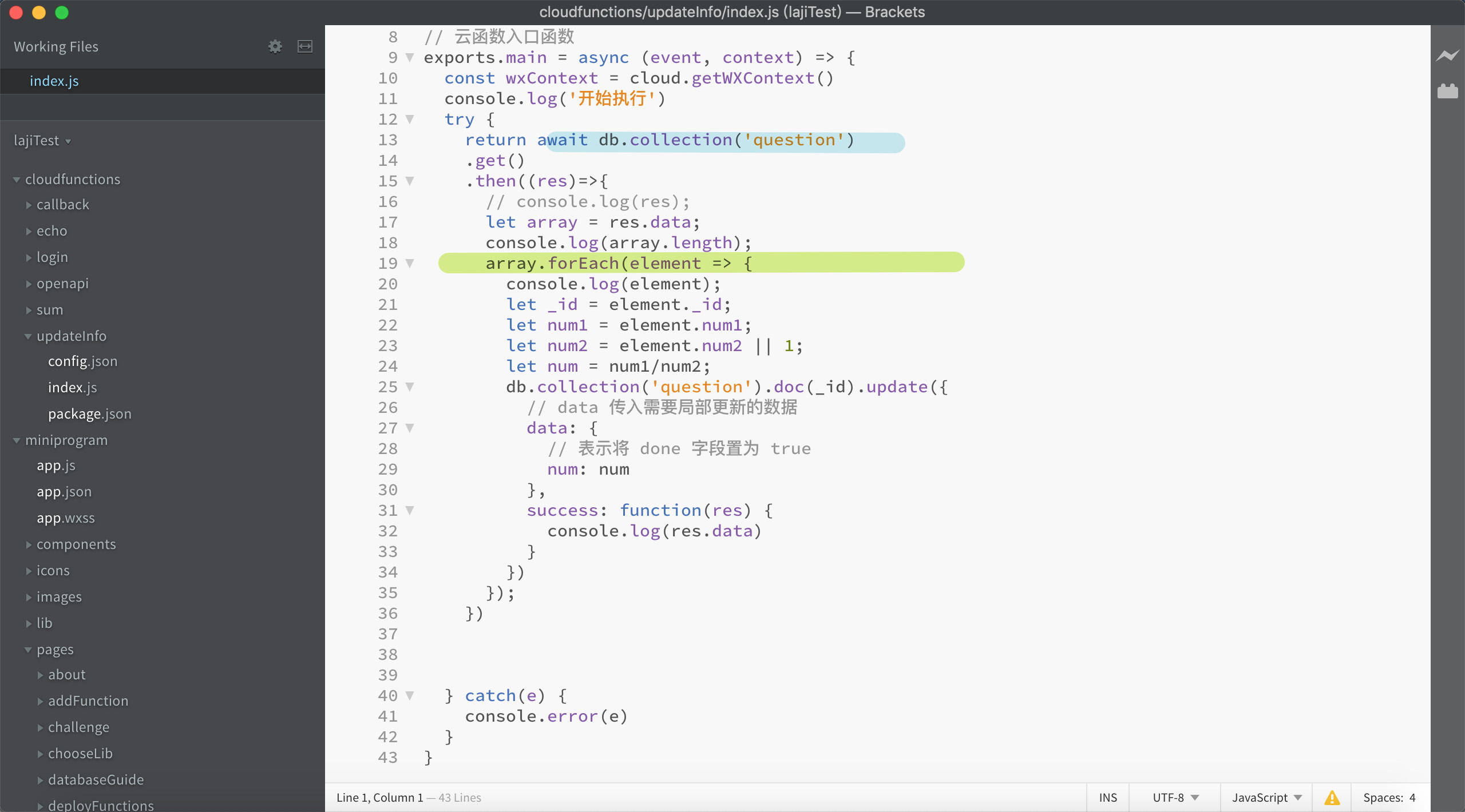 由于目前云开发数据库能力不足以提供这种update xx set C=A/B 的支持,所以这部分逻辑要自己控制,