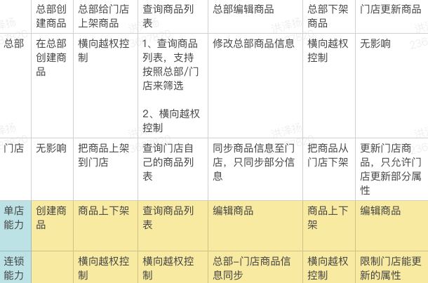 我们来看看如果按照上面的划分标准,之前的场景可以抽象出哪些能力,这些能力属于单店能力还是连锁能力: