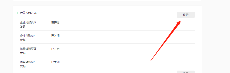 位置:「微信支付商户后台」->「产品中心」->「企业付款到零钱」->「产品设置」->「付款发起方式-设置」->「发起方式-企业付款-勾选使用API接口发起付款」->「接口调用IP-添加IP」
