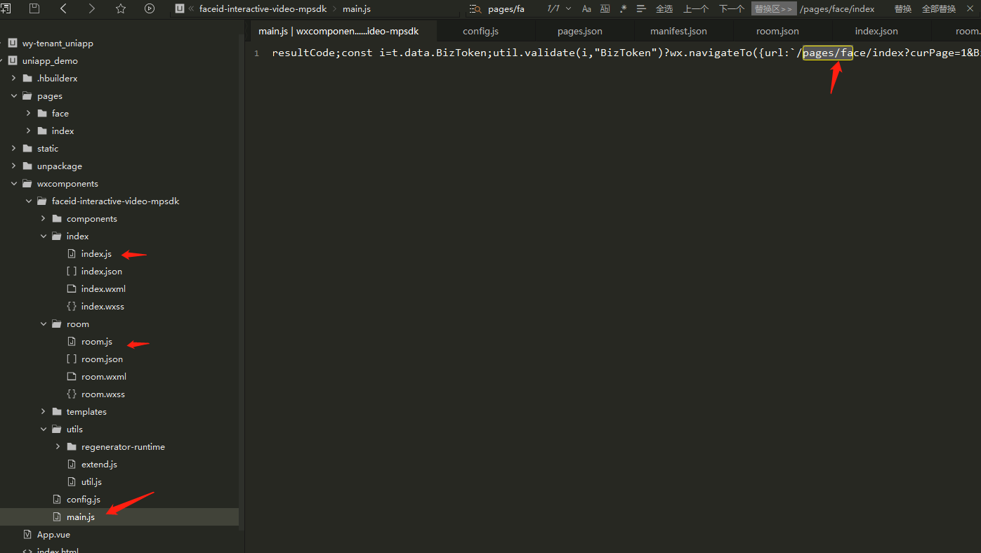 4,修改sdk main index room js文件跳转路径。指向组件对应页面