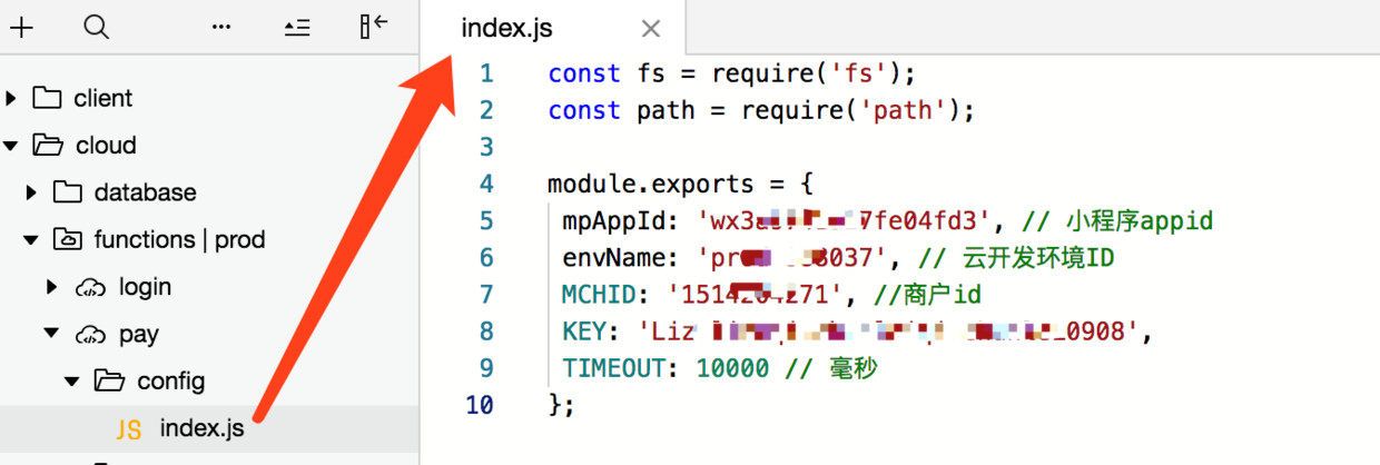 config下的index.js是做支付配置用的,主要配置支付相关的账号信息