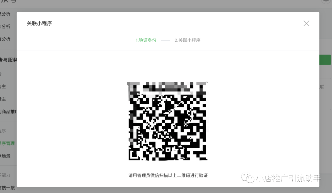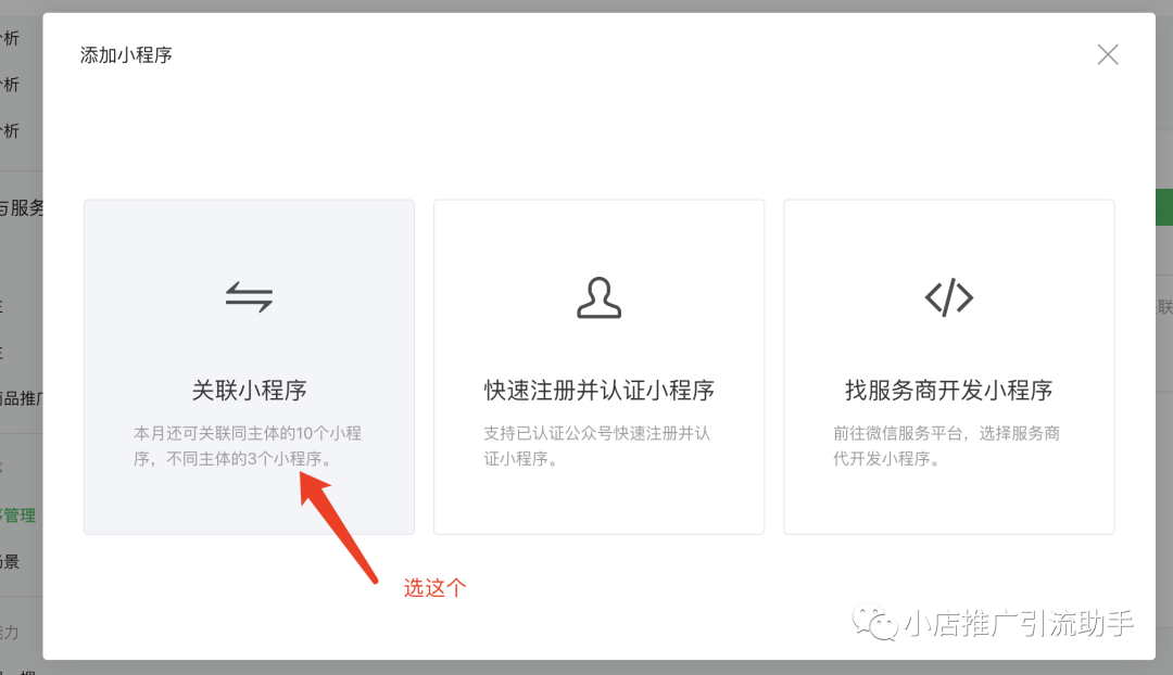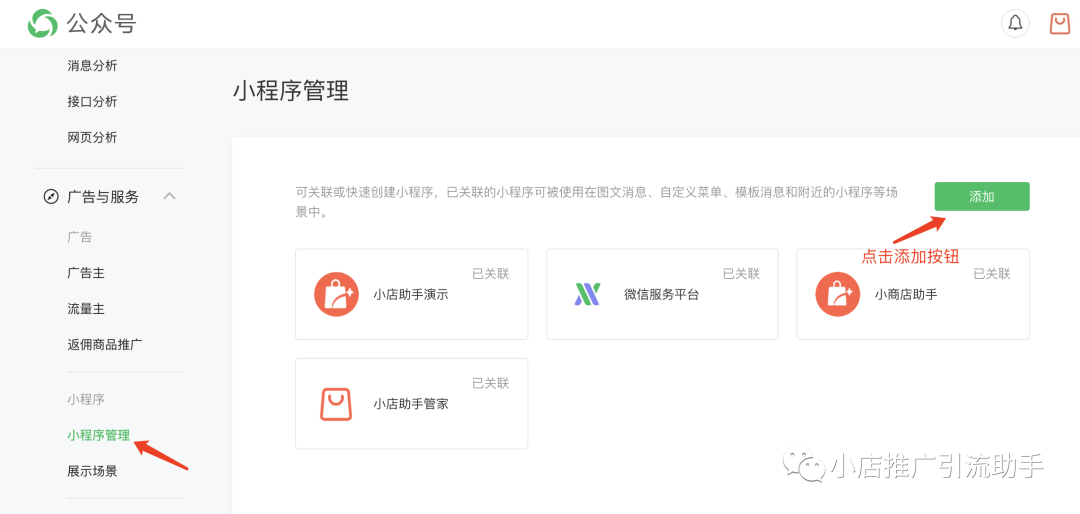 左侧菜单中找到「小程序管理」点击打开设置界面,页面右上角点击添加按钮。