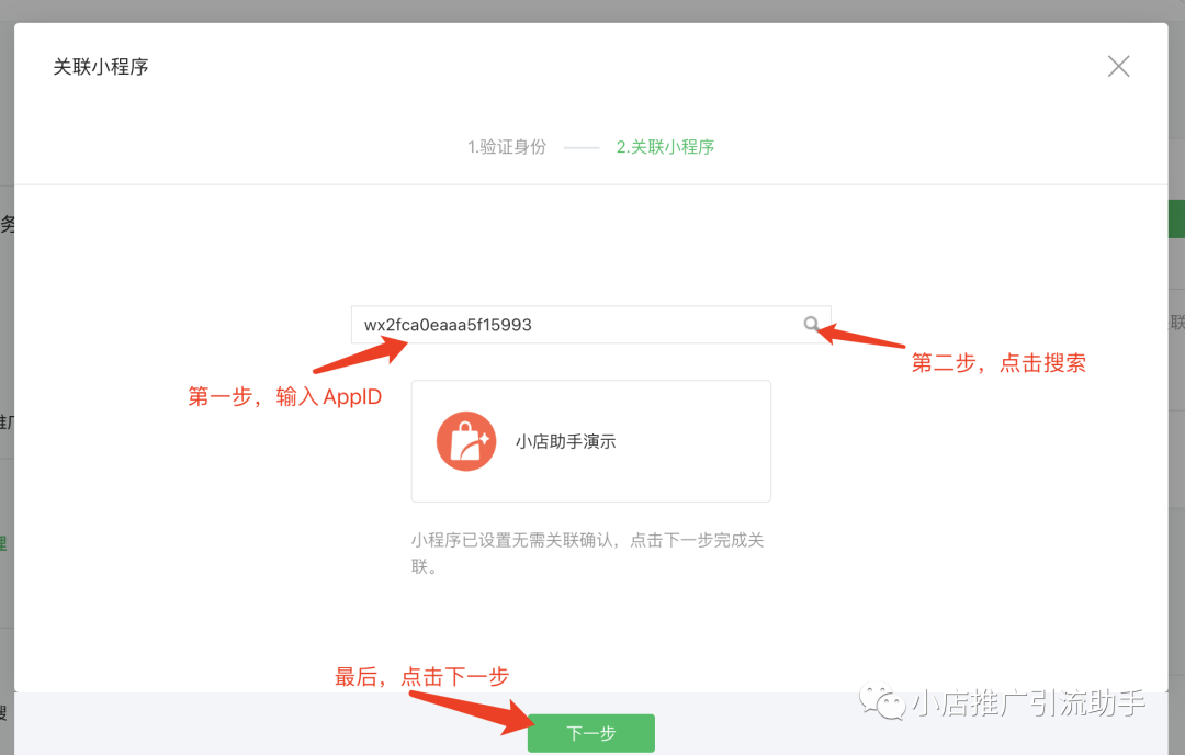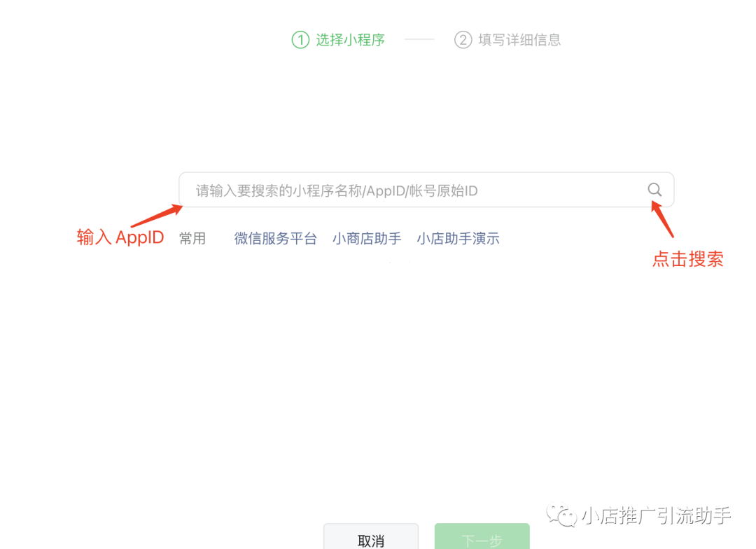 在打开的对话框中输入AppID,点击搜索按钮,确认进入下一步。