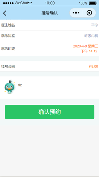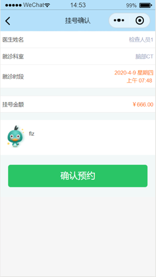 点击具体日期具体时间后跳转到确认预约页面如图1.3.8。
