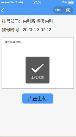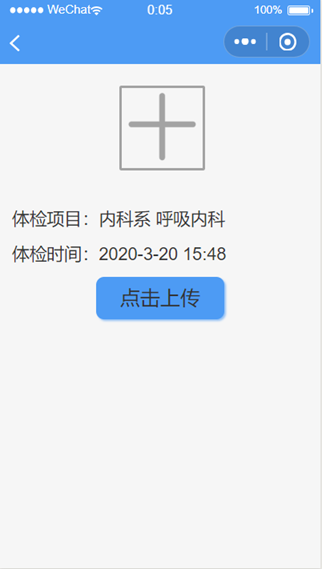 点击中间的加号按钮可以上传患者体检结果的照片。(可拍照上传或从手机相册上传)