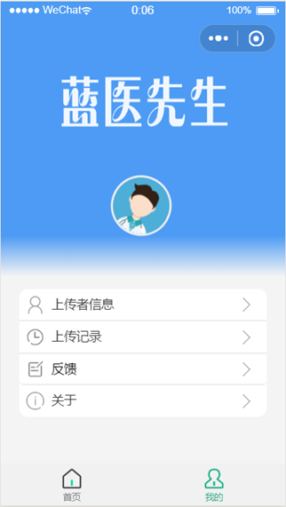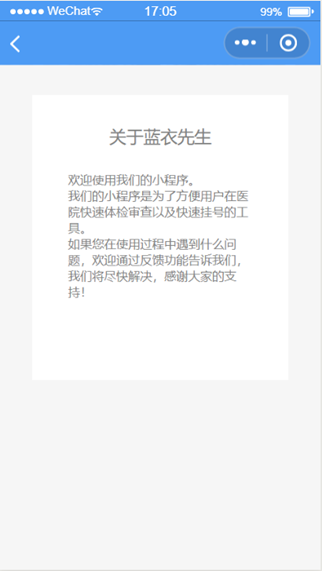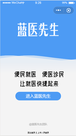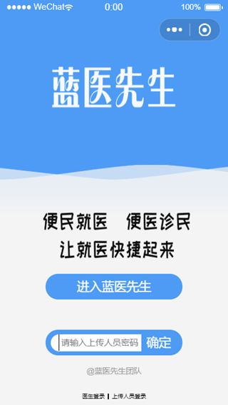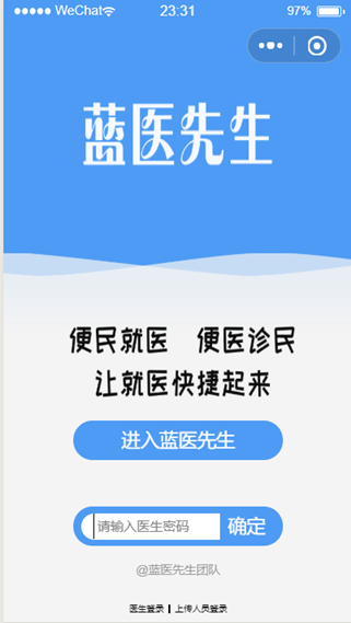患者用户登录界面如图1.1.1所示。点击进入蓝医先生即可访问“蓝衣先生”小程序。