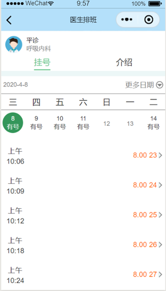 在该页面医生可以看到哪些时间段有患者进行了预约。