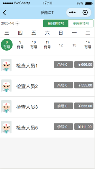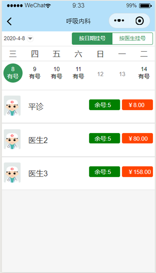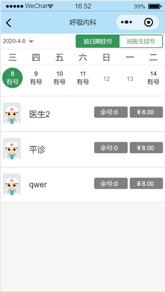 图1.3.2按日期挂号页面
