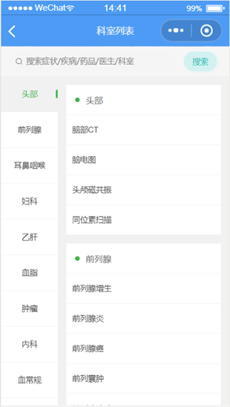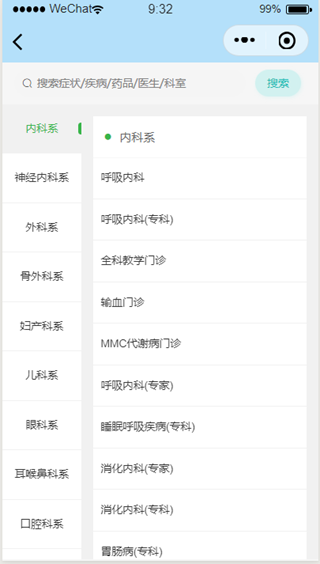患者用户可以进行科室的选择如图1.3.1。