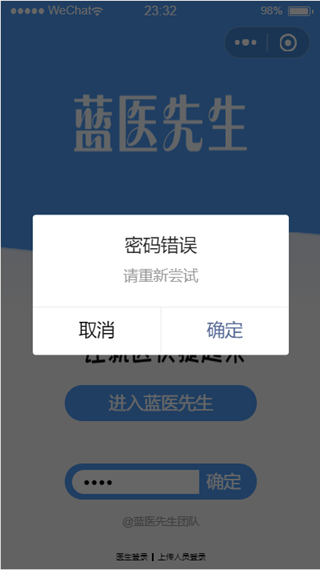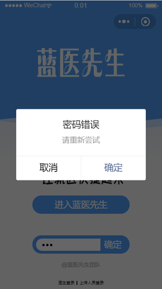 点击屏幕下方的医生登录即可显示医生的密码输入框。