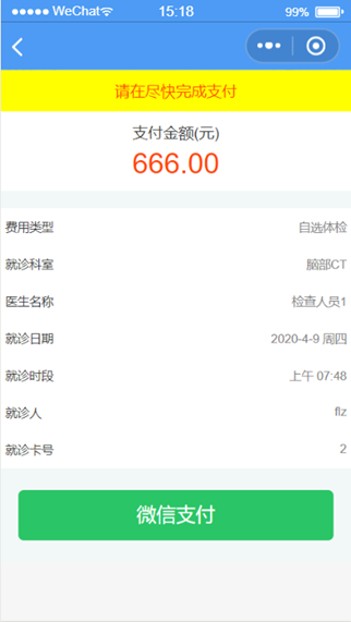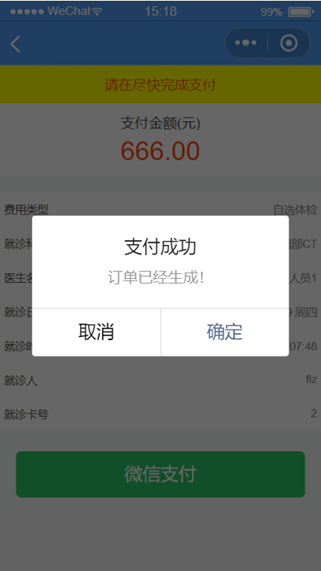 点击确认预约后跳转到确认支付页面如图1.3.9。