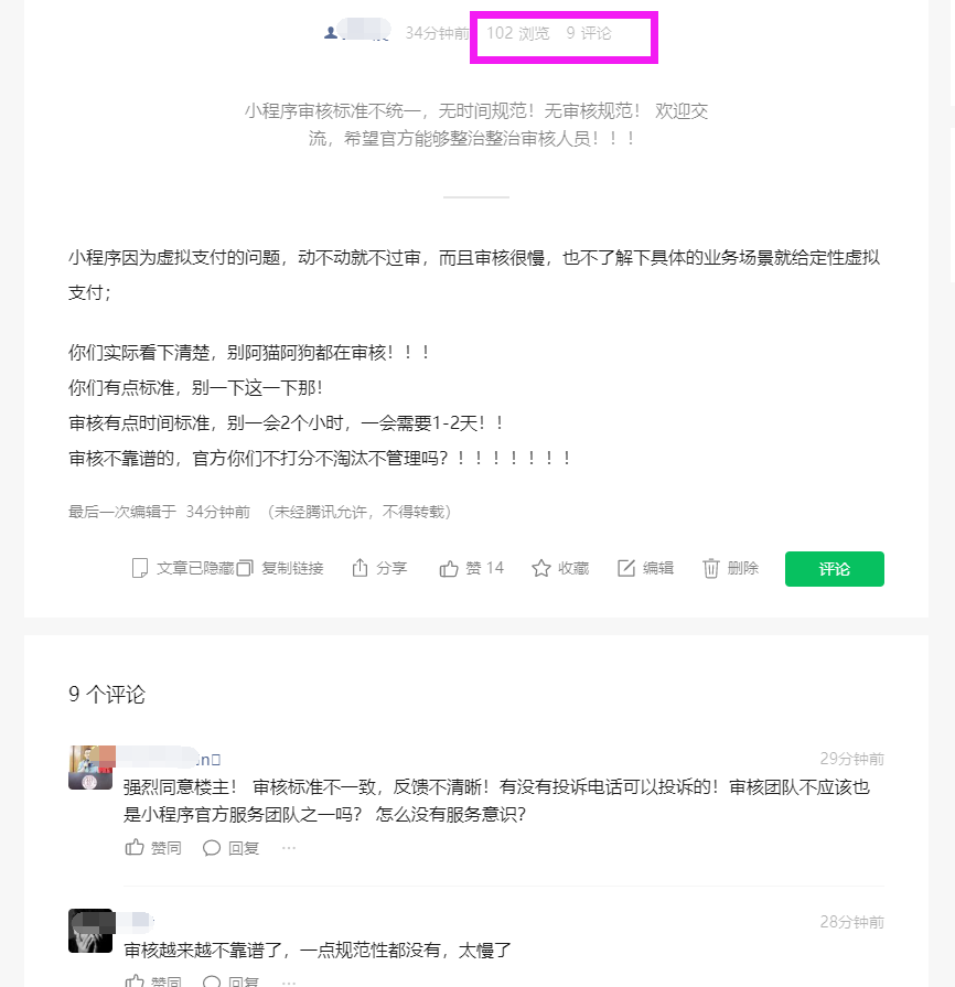 小程序审核标准不统一,无时间规范!无审核规范! 欢迎交流,希望官方能够整治整治审核人员!!!