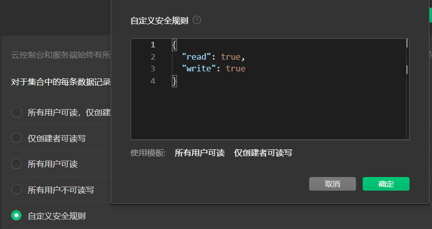 由于云函数的访问不存在openid,所以安全规则必须为任何人可读可写。