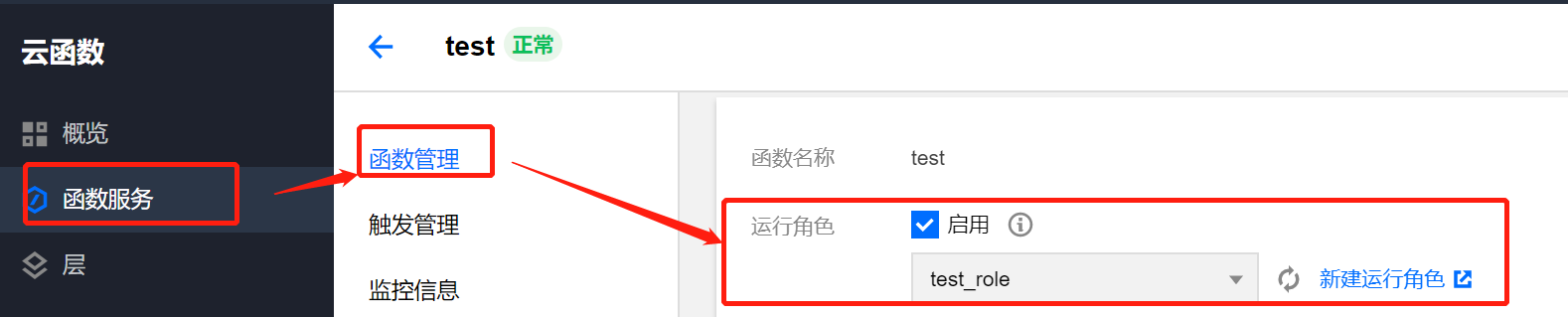 在云函数启用刚刚新建的角色
