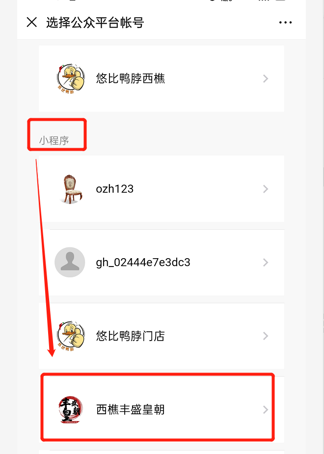 选择你要发消息到公众号的小程序