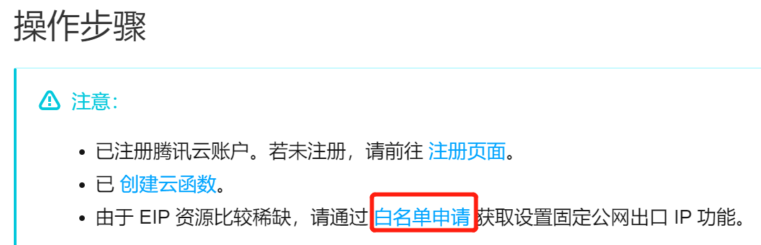 1.打开 https://cloud.tencent.com/document/product/583/38198 ,申请白名单