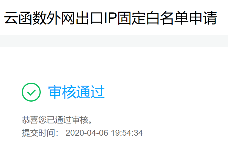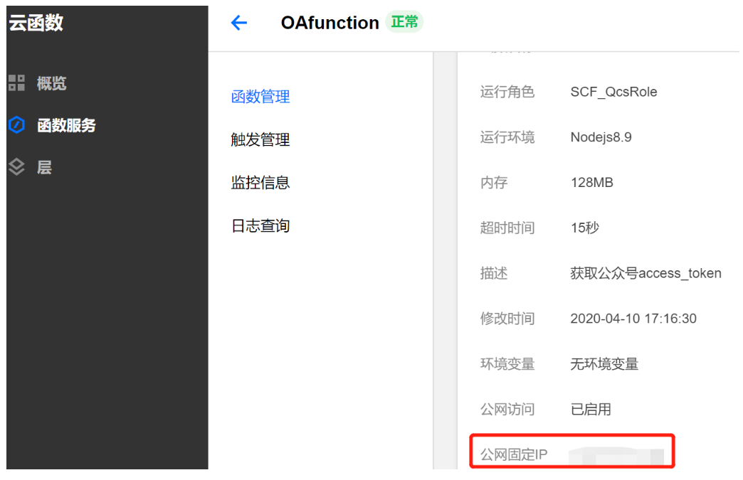 最后你的云函数会得到一个公网固定ip