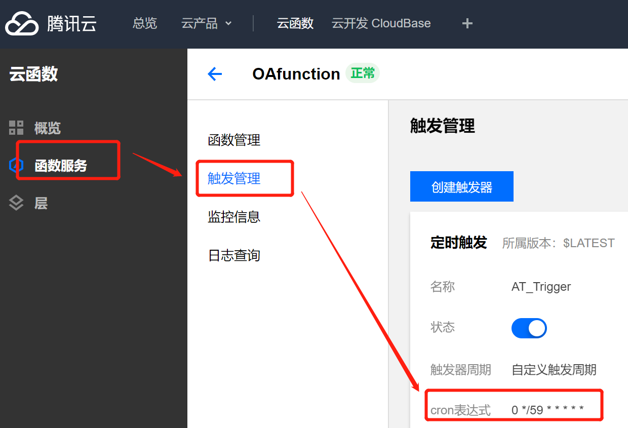 4.设置触发器(触发器偶尔会失灵,所以最好是59min触发一次)。
