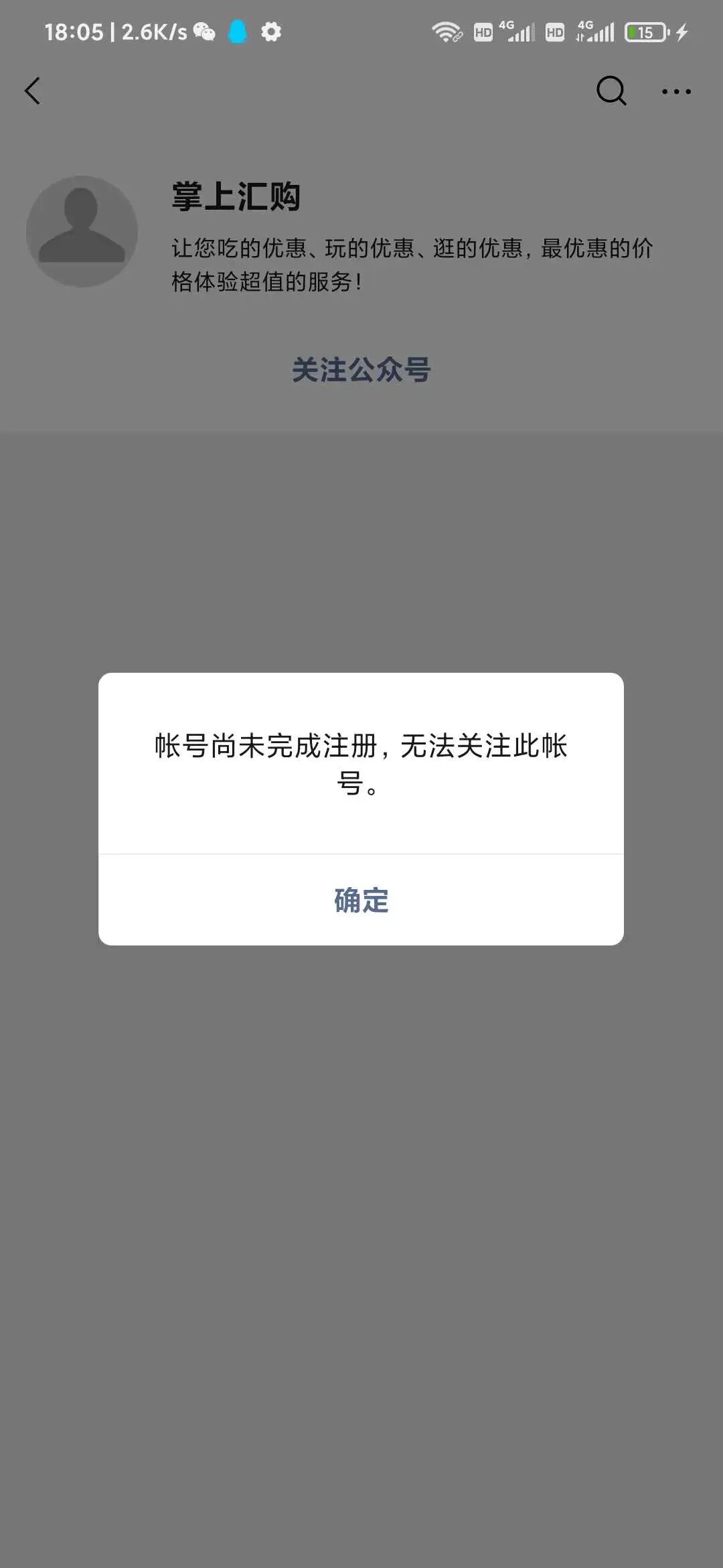 求官方看下,非常急微信公众号提示我未完成注册,无法关注此账号,可是这个号我按照流程一部一部的注册,怎么可能未完成,而且从新登录是可以从新登录上去的