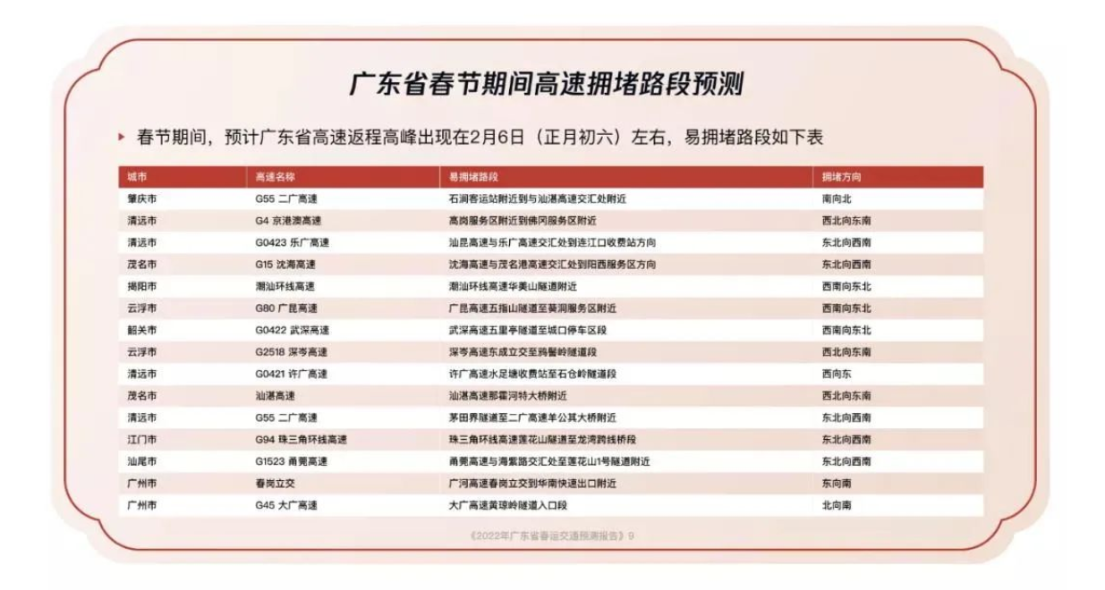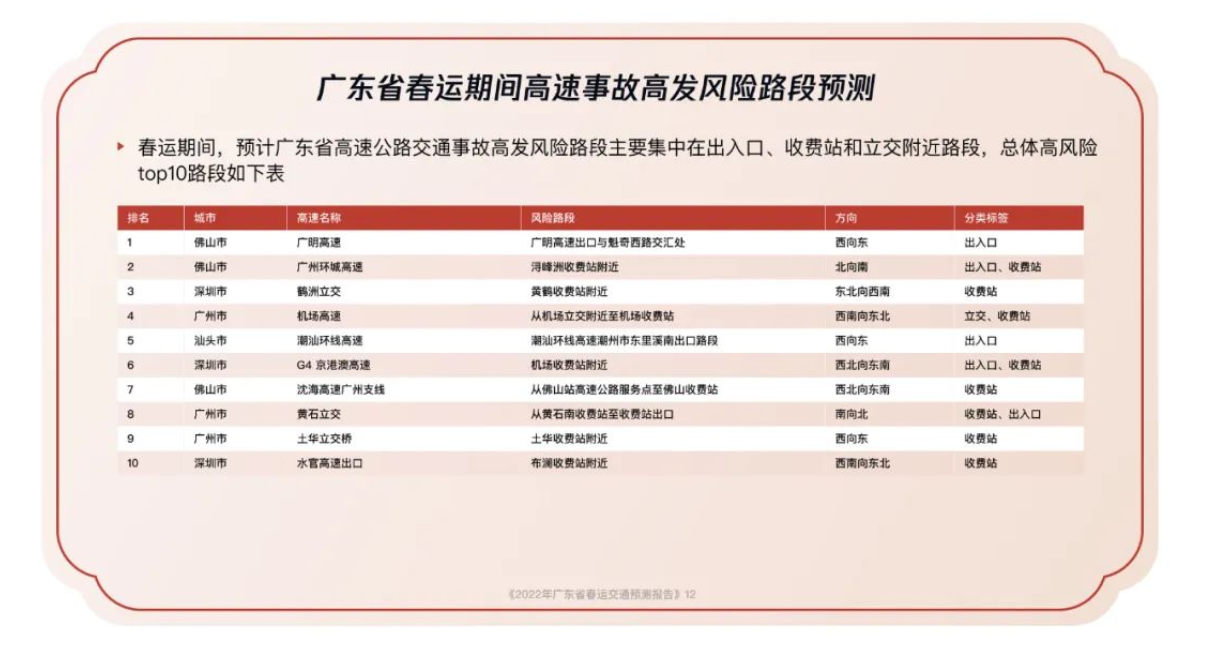 腾讯智慧交通、腾讯地图、腾讯研究院、腾讯位置服务、腾讯自动驾驶联合广东省公安厅交通管理局,基于腾讯交通数字底座核心能力,针对脱敏后的交通出行、位置服务大数据进行多维时空分析计算,发布《2022年广东省春运交通预测报告》(以下称《预测报告》),对省内春运道路拥堵、道路安全、车流迁徙及客流方面提供预测,帮助广大市民合理规划春节出行。