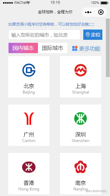 本文旨在以mpvue框架为基础,探讨地图类小程序的开发思路。 原作者利用mpvue + 腾讯地图的能力做了一个地铁路线规划的小程序,主要提供全球主要城市的地铁线网图及旅游介绍,其中国内城市支持查看地图和路线规划。