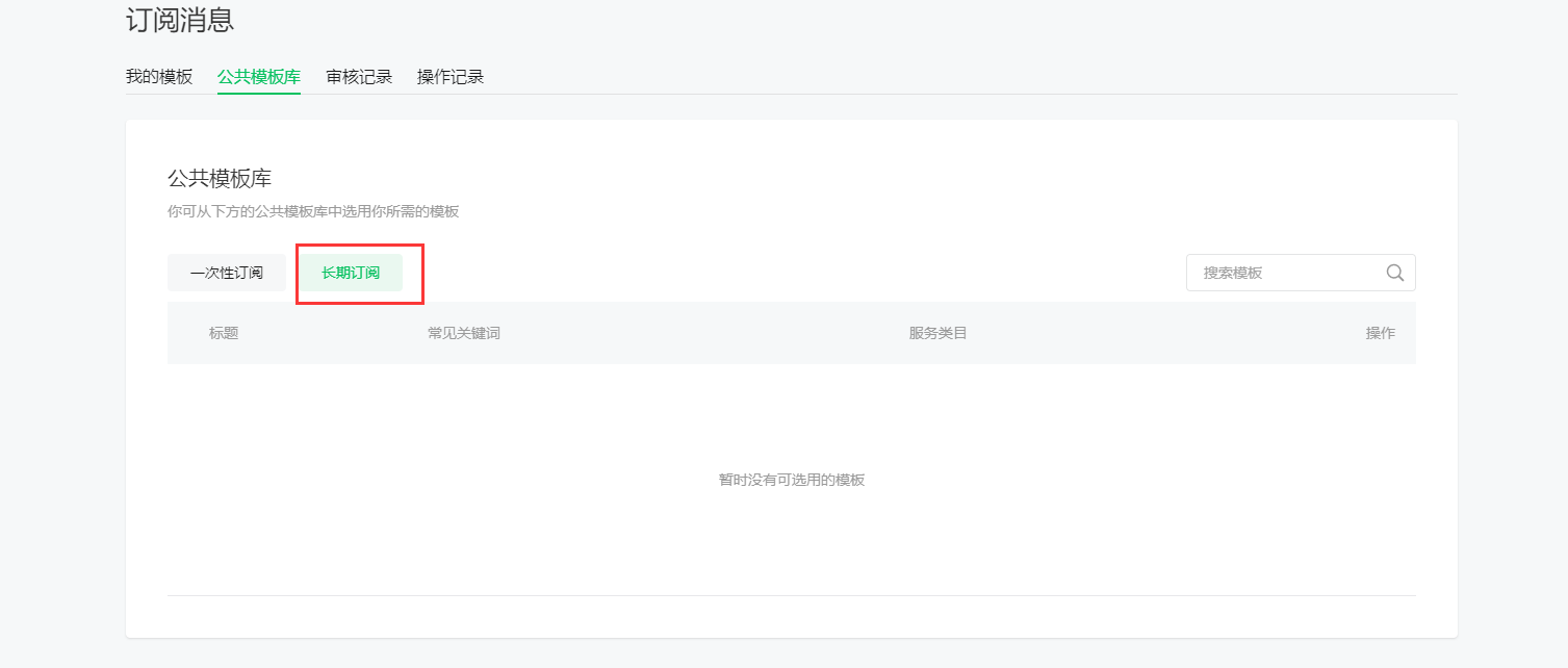 目前长期性订阅消息仅向政务民生、医疗、交通、金融、教育等线下公共服务开放,后期将逐步支持到其他线下公共服务业务,可参考:https://developers.weixin.qq.com/community/develop/doc/00008a8a7d8310b6bf4975b635a401?blockType=1