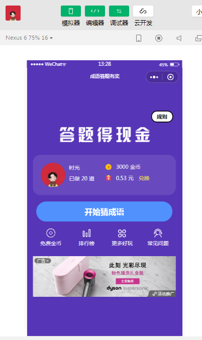 成语答题小程序v2.0完善了成语答题部分功能,优化了遇到的bug。
